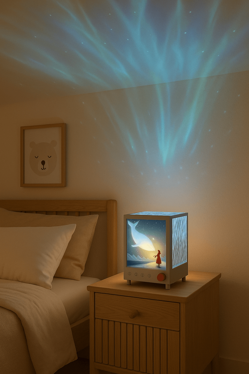 Der AuroraTraum™ Projektor verwandelt jedes Kinderzimmer in eine beruhigende Traumwelt. Sanfte Sternen- und Polarlichtprojektionen sowie weißes Rauschen helfen beim Einschlafen – für mehr Ruhe, Geborgenheit und schöne Abendrituale.