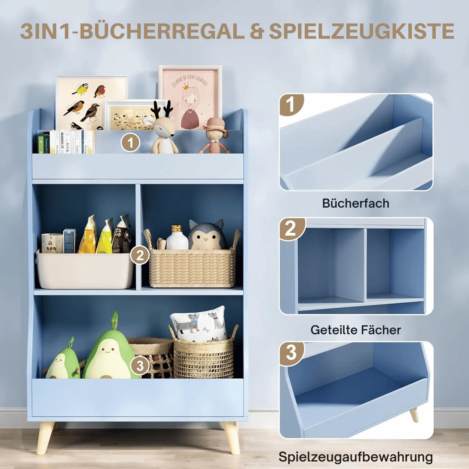 - Viel Stauraum für Bücher, Spielzeug und mehr