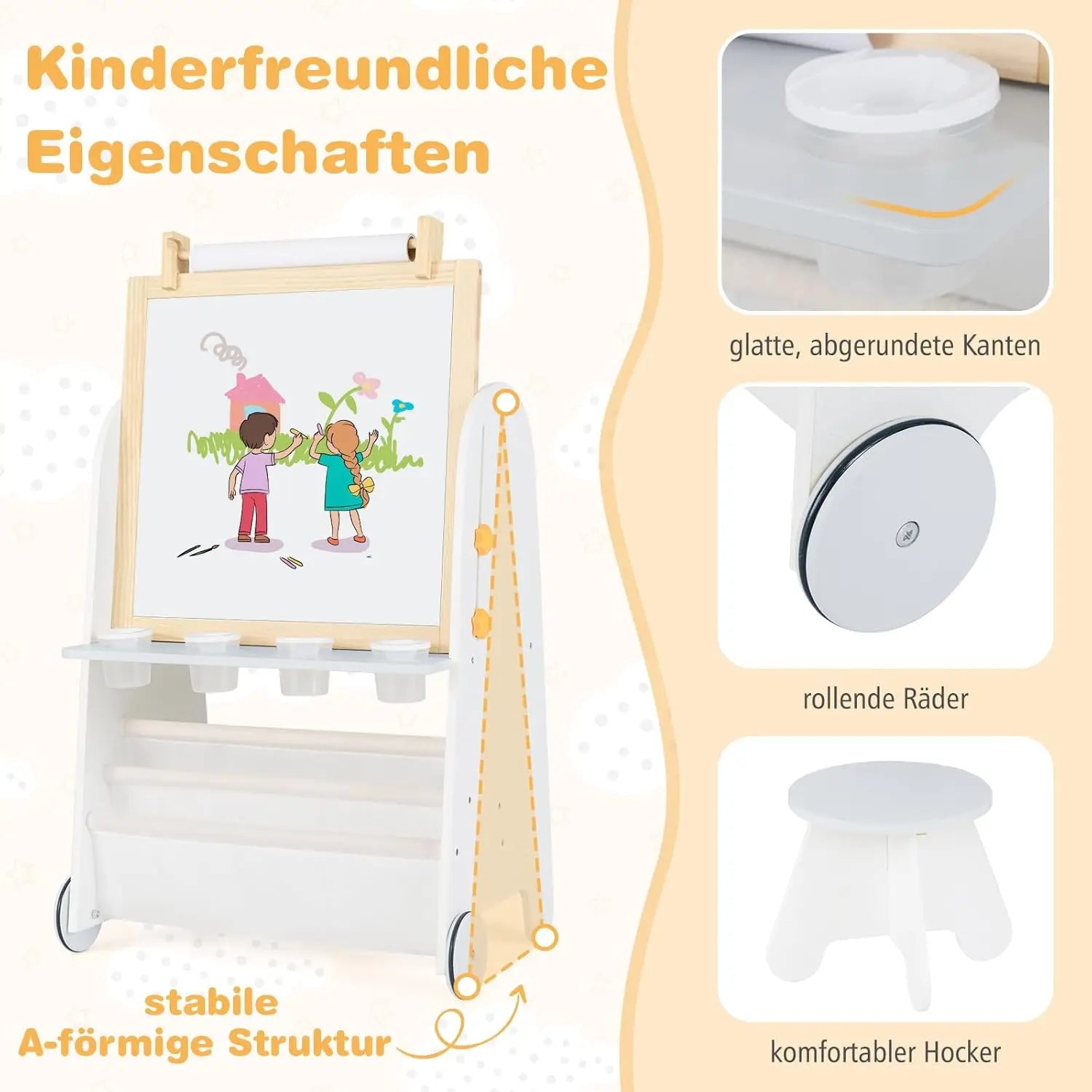 Kinder Staffelei mit Hocker – 4-in-1 Kreativset
